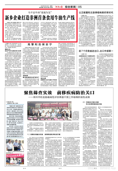 在被誉为“非洲明珠”的乌干达,新乡市红阳油脂工程技术有限公司拿下一笔130万元的“大订单”,将为该国量身打造一套食用牛油生产线。